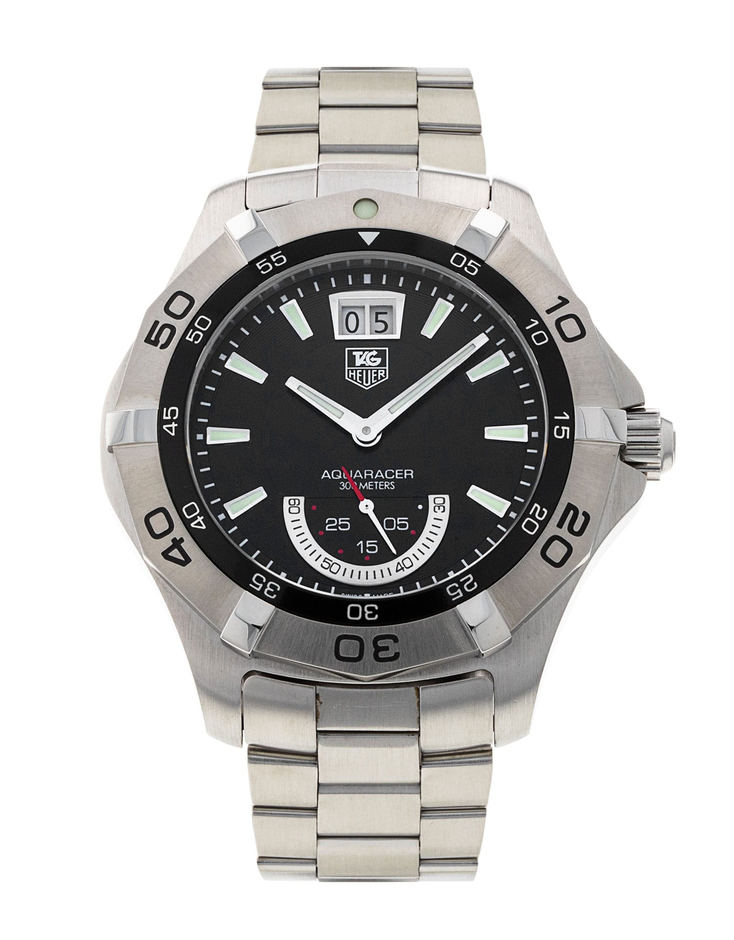This Tag Heuer Aquaracer WAF1010.BA0822 has a black baton dial and a bracelet strap. This Tag Heuer has undergone a thorough inspection of accuracy, functionality and condition at our Tag Heuer certified service centre to determine the level of reconditioning required to meet our strict standards. It has also been checked against our records to ensure authenticity. All our watches have a 24-month warranty for your peace of mind.