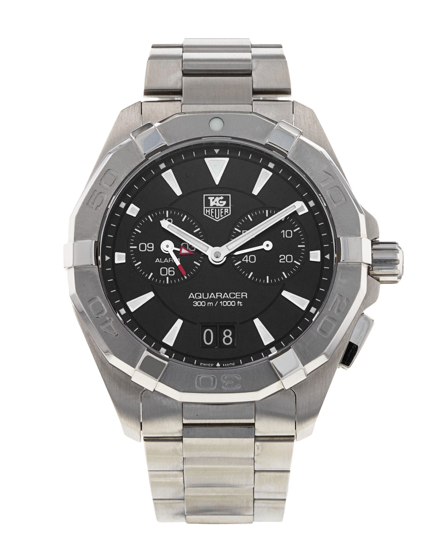 This Tag Heuer Aquaracer WAY111Z.BA0928 has a black baton dial and a bracelet strap. This Tag Heuer has undergone a thorough inspection of accuracy, functionality and condition at our Tag Heuer certified service centre to determine the level of reconditioning required to meet our strict standards. It has also been checked against our records to ensure authenticity. All our watches have a 24-month warranty for your peace of mind.