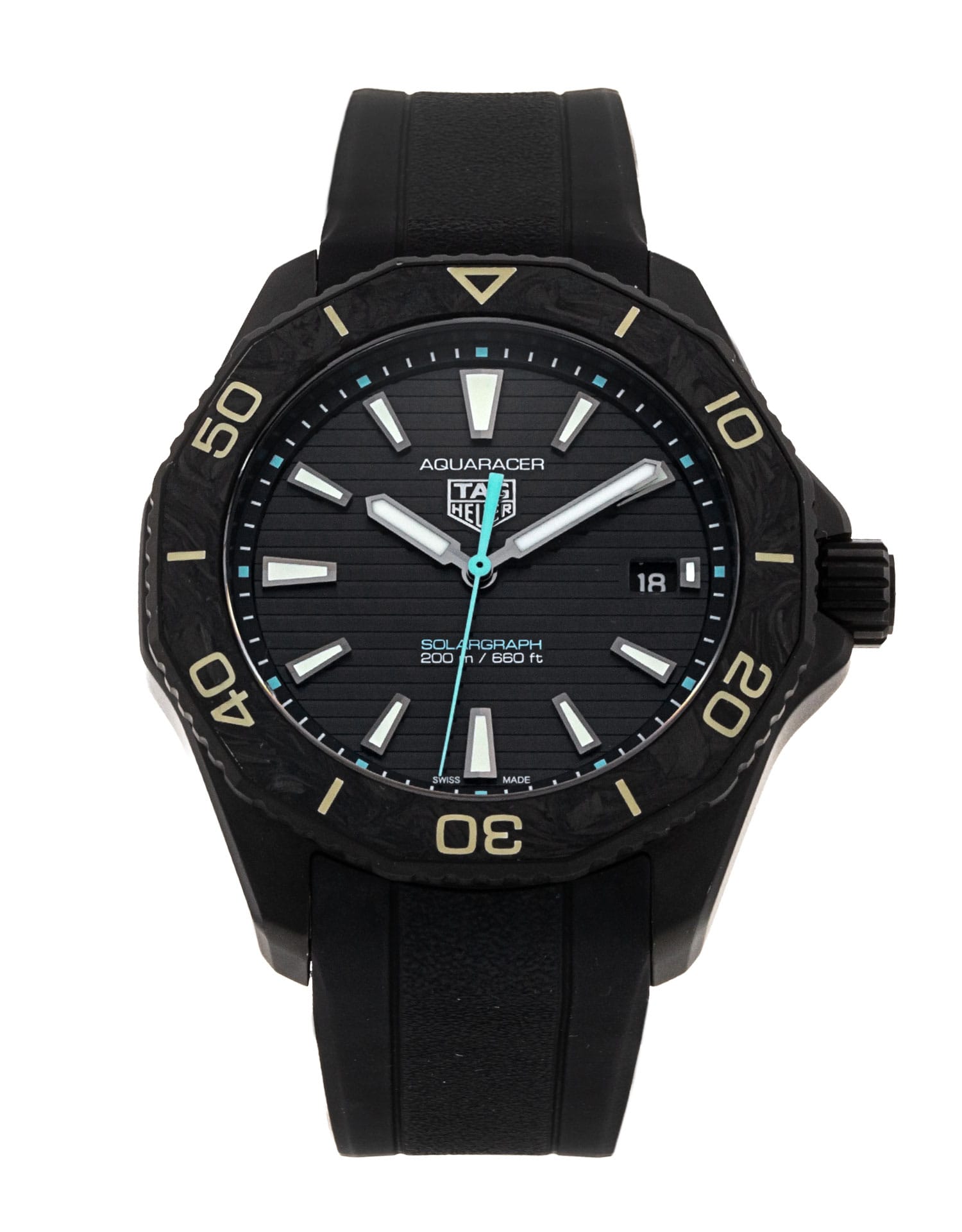This Tag Heuer Aquaracer WBP1112.FT6199 has a black baton dial and a rubber strap. This Tag Heuer has undergone a thorough inspection of accuracy, functionality and condition at our Tag Heuer certified service centre to determine the level of reconditioning required to meet our strict standards. It has also been checked against our records to ensure authenticity. All our watches have a 24-month warranty for your peace of mind.