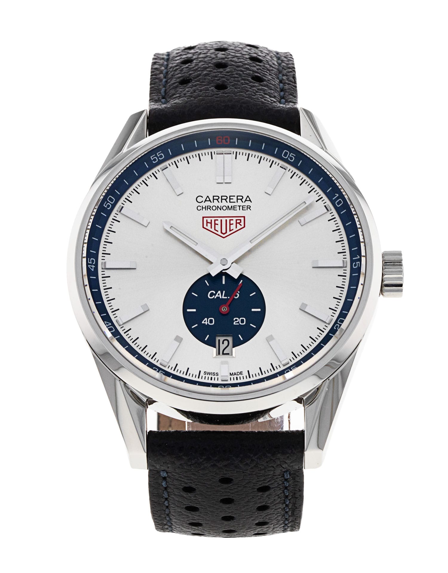 This Tag Heuer Carrera WV5111.FC6350 has a silver baton dial and a leather strap. This Tag Heuer has undergone a thorough inspection of accuracy, functionality and condition at our Tag Heuer certified service centre to determine the level of reconditioning required to meet our strict standards. It has also been checked against our records to ensure authenticity. All our watches have a 24-month warranty for your peace of mind.
