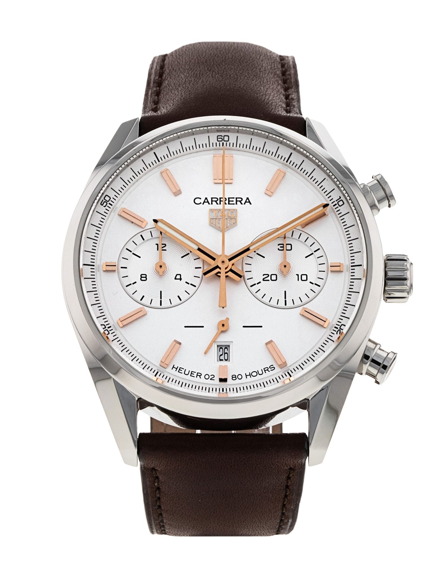 This Tag Heuer Carrera CBN2013 has a silver baton dial and a leather strap. This Tag Heuer has undergone a thorough inspection of accuracy, functionality and condition at our Tag Heuer certified service centre to determine the level of reconditioning required to meet our strict standards. It has also been checked against our records to ensure authenticity. All our watches have a 24-month warranty for your peace of mind.