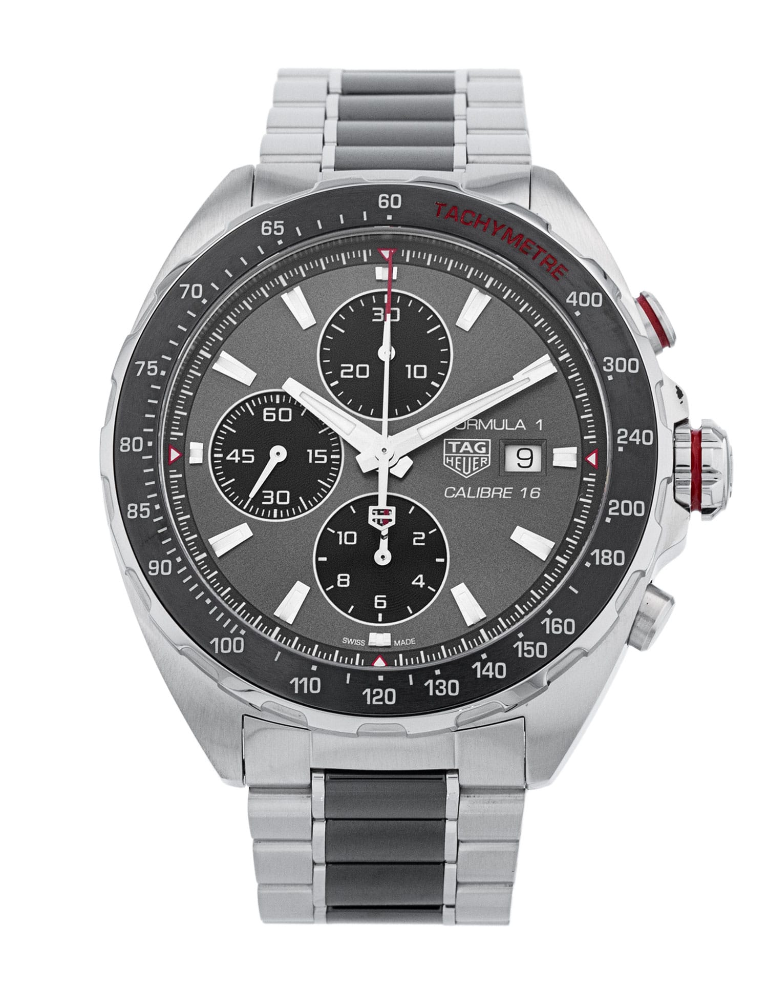 This Tag Heuer Formula 1 CAZ2012.BA0970 has a grey baton dial and a bracelet strap. This Tag Heuer has undergone a thorough inspection of accuracy, functionality and condition at our Tag Heuer certified service centre to determine the level of reconditioning required to meet our strict standards. It has also been checked against our records to ensure authenticity. All our watches have a 24-month warranty for your peace of mind.