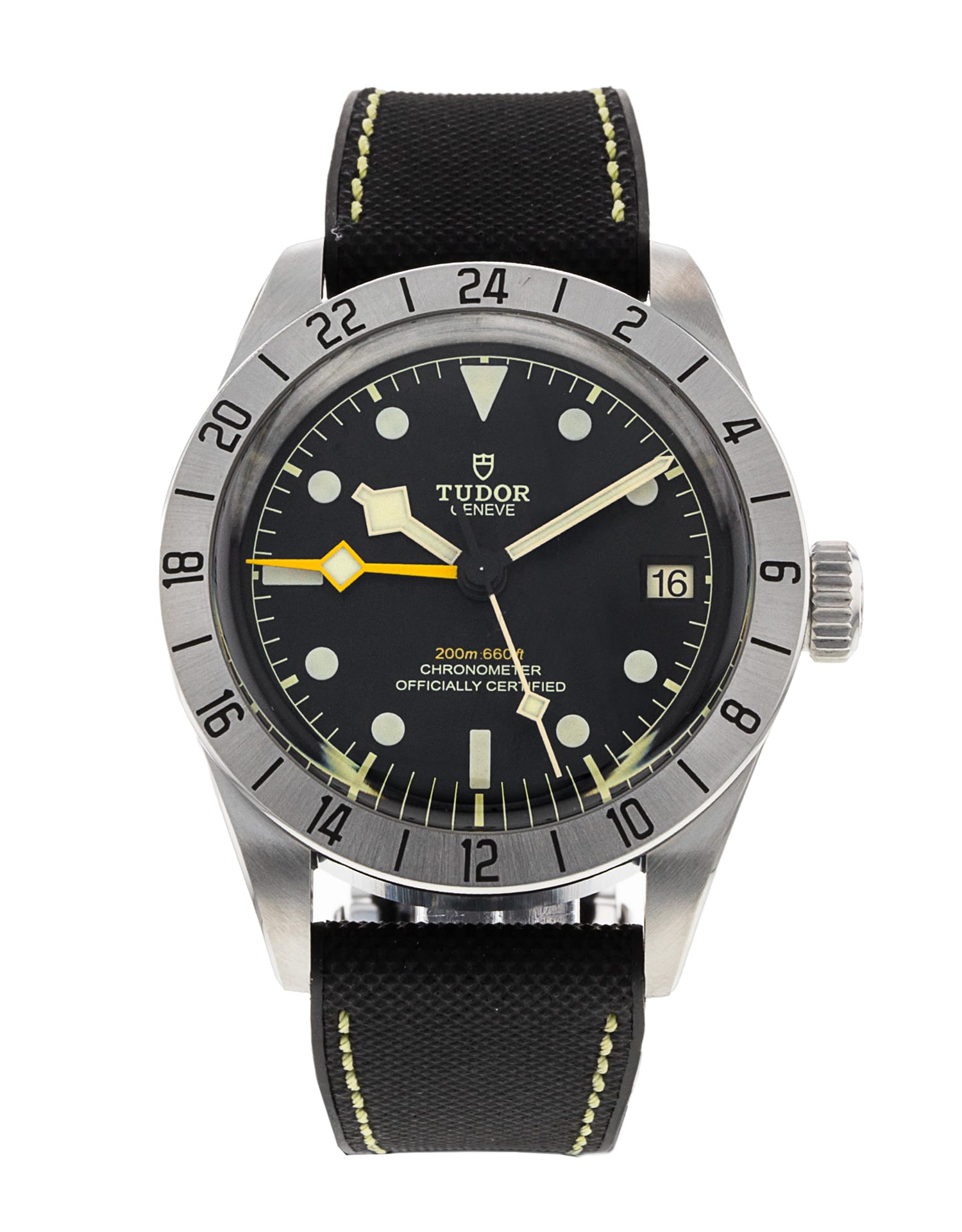 This Tudor Black Bay Pro M79470-0003 has a black dial and a leather strap. This Tudor has undergone a thorough inspection of water resistance, accuracy, functionality and condition to determine the level of reconditioning required to meet our strict standards. It has also been referenced against technical documents and manufacturer records where available to ensure authenticity and a clean history. All our watches have a 24-month warranty for your peace of mind. One of our skilled polishing technicians has removed marks on the case and bracelet of this watch, brought about by daily wear and tear, which is why this watch does not come with the remaining manufacturer’s warranty.