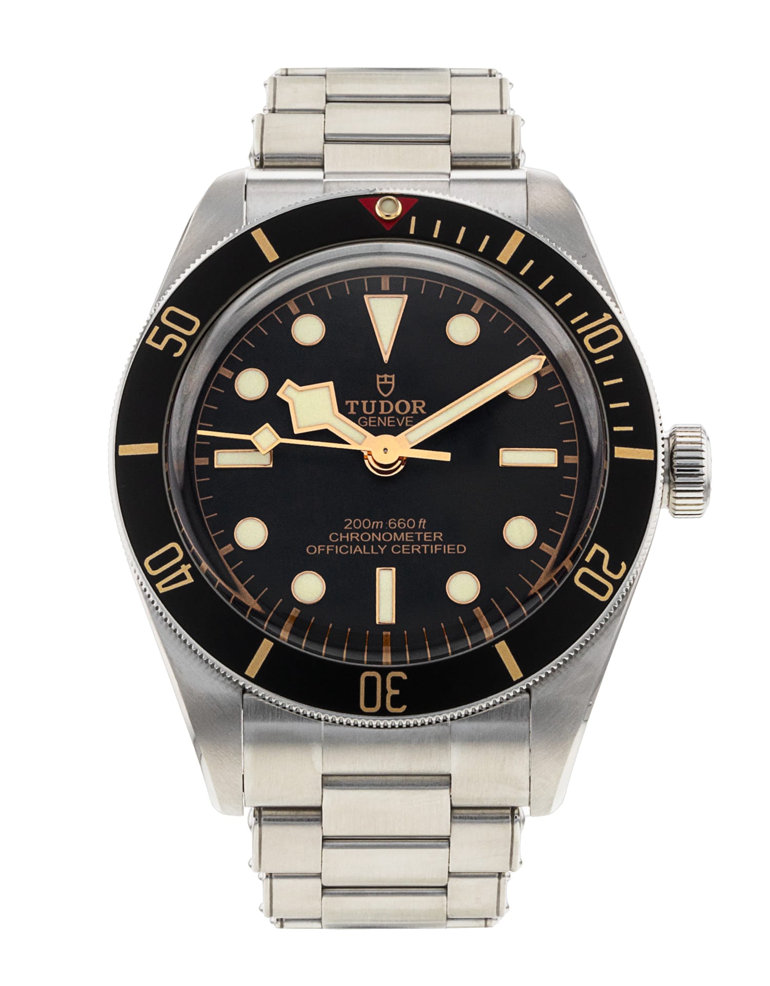 This Tudor Black Bay M79230N-0009 has a black dial and a bracelet strap. This Tudor has undergone a thorough inspection of water resistance, accuracy, functionality and condition to determine the level of reconditioning required to meet our strict standards. It has also been referenced against technical documents and manufacturer records where available to ensure authenticity and a clean history. All our watches have a 24-month warranty for your peace of mind. One of our skilled polishing technicians has removed marks on the case and bracelet of this watch, brought about by daily wear and tear, which is why this watch does not come with the remaining manufacturer’s warranty.