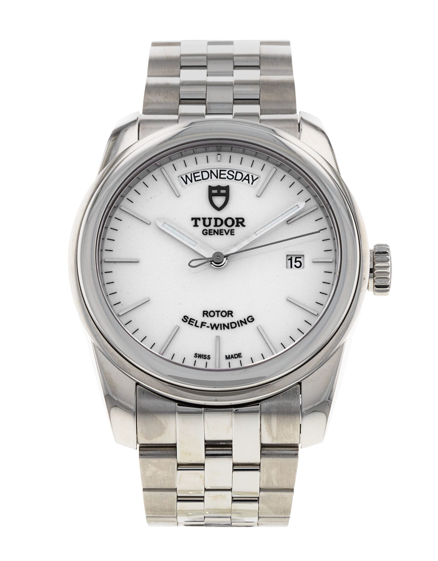 This Tudor Glamour Date & Day 56000 has a silver baton dial and a bracelet strap. This Tudor has undergone a thorough inspection of water resistance, accuracy, functionality and condition to determine the level of reconditioning required to meet our strict standards. It has also been referenced against technical documents and manufacturer records where available to ensure authenticity and a clean history. All our watches have a 24-month warranty for your peace of mind. One of our skilled polishing technicians has removed marks on the case and bracelet of this watch, brought about by daily wear and tear, which is why this watch does not come with the remaining manufacturer’s warranty.