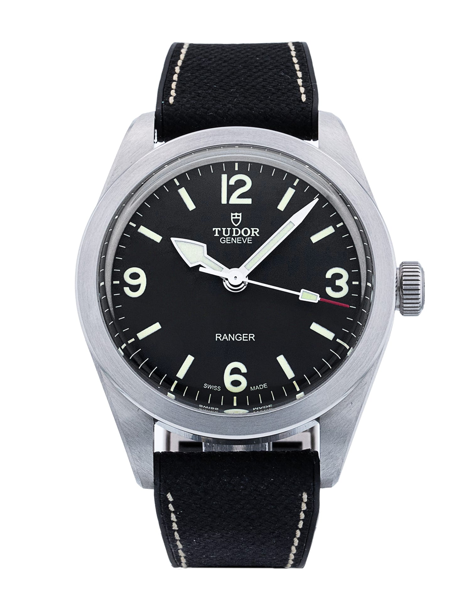 This Tudor Ranger M79950-0002 has a black quarter arabic dial and a leather strap. This Tudor has undergone a thorough inspection of water resistance, accuracy, functionality and condition to determine the level of reconditioning required to meet our strict standards. It has also been referenced against technical documents and manufacturer records where available to ensure authenticity and a clean history. Our watches have a 24-month warranty for your peace of mind, in conjunction with any remaining manufacturer’s warranty from new or from service. To maintain the manufacturer’s warranty on this watch, it has not been polished in our service centre.