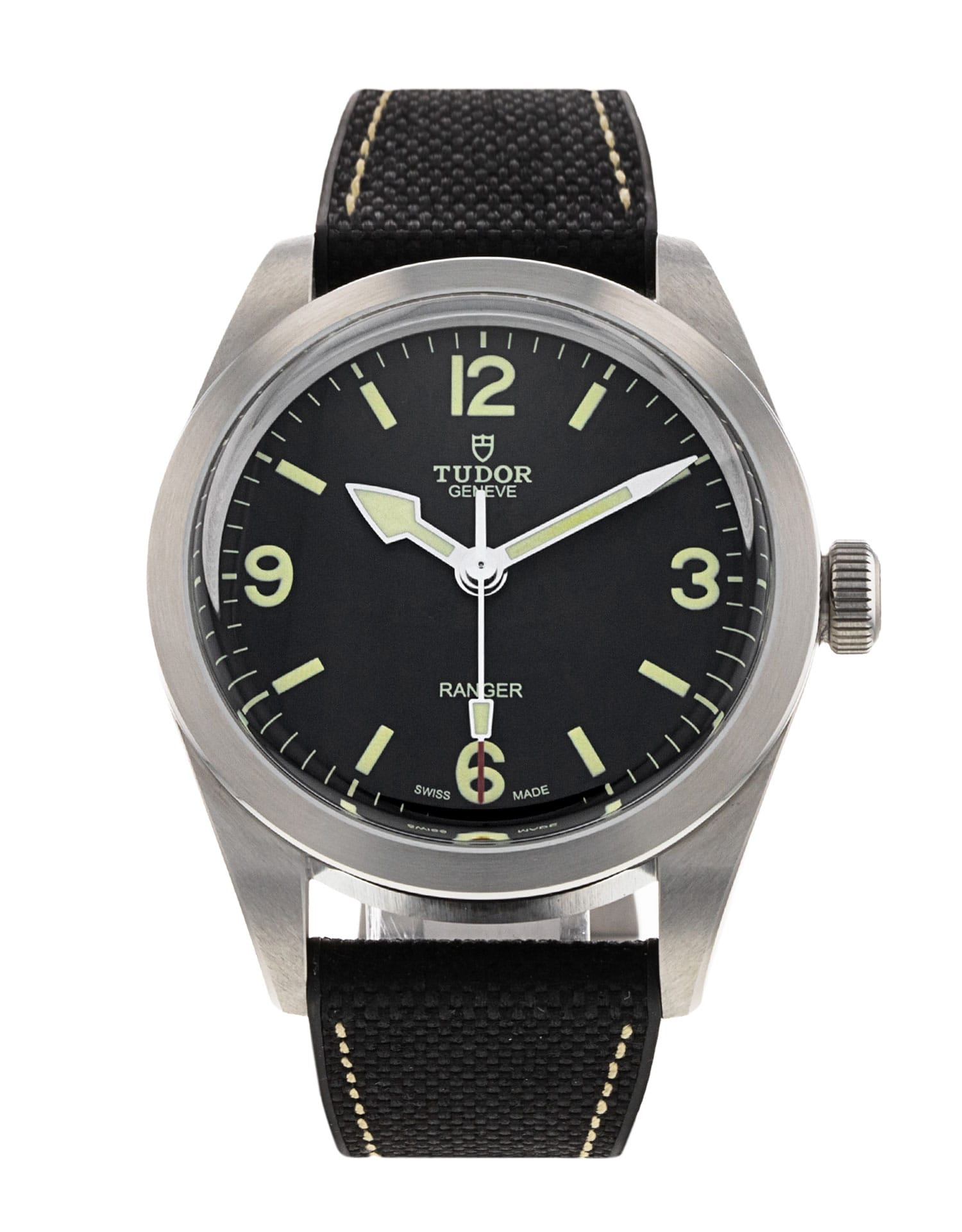 This Tudor Ranger M79950-0002 has a black quarter arabic dial and a leather strap. This Tudor has undergone a thorough inspection of water resistance, accuracy, functionality and condition to determine the level of reconditioning required to meet our strict standards. It has also been referenced against technical documents and manufacturer records where available to ensure authenticity and a clean history. Our watches have a 24-month warranty for your peace of mind, in conjunction with any remaining manufacturer’s warranty from new or from service. To maintain the manufacturer’s warranty on this watch, it has not been polished in our service centre.
