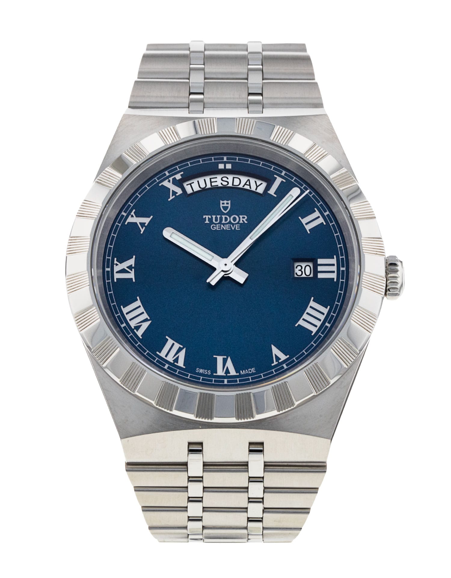 This Tudor Royal M28600-0005 has a blue roman numeral dial and a bracelet strap. This Tudor has undergone a thorough inspection of water resistance, accuracy, functionality and condition to determine the level of reconditioning required to meet our strict standards. It has also been referenced against technical documents and manufacturer records where available to ensure authenticity and a clean history. Our watches have a 24-month warranty for your peace of mind, in conjunction with any remaining manufacturer’s warranty from new or from service. To maintain the manufacturer’s warranty on this watch, it has not been polished in our service centre.