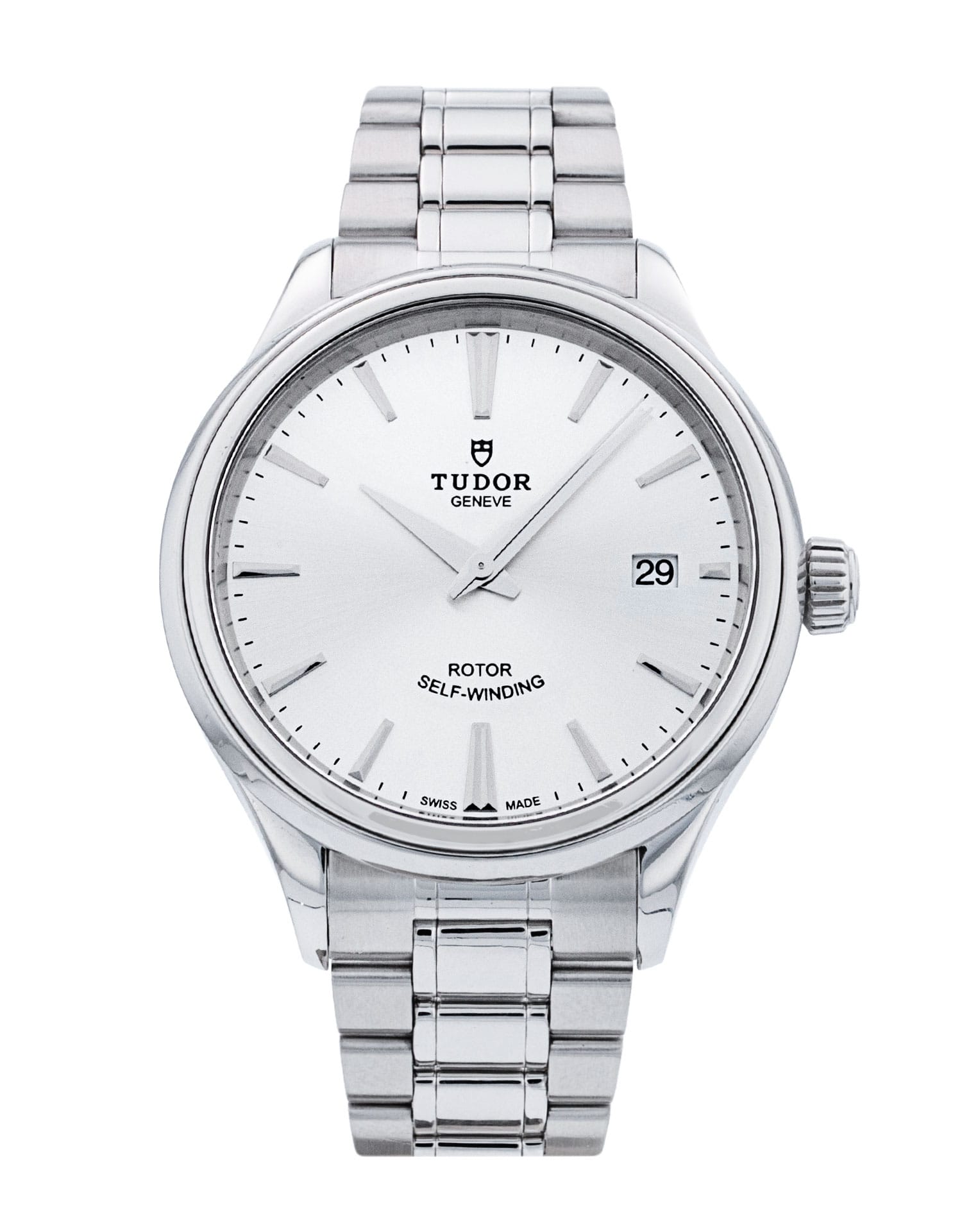 This Tudor Style M12500-0001 has a silver baton dial and a bracelet strap. This Tudor has undergone a thorough inspection of water resistance, accuracy, functionality and condition to determine the level of reconditioning required to meet our strict standards. It has also been referenced against technical documents and manufacturer records where available to ensure authenticity and a clean history. Our watches have a 24-month warranty for your peace of mind, in conjunction with any remaining manufacturer’s warranty from new or from service. To maintain the manufacturer’s warranty on this watch, it has not been polished in our service centre.