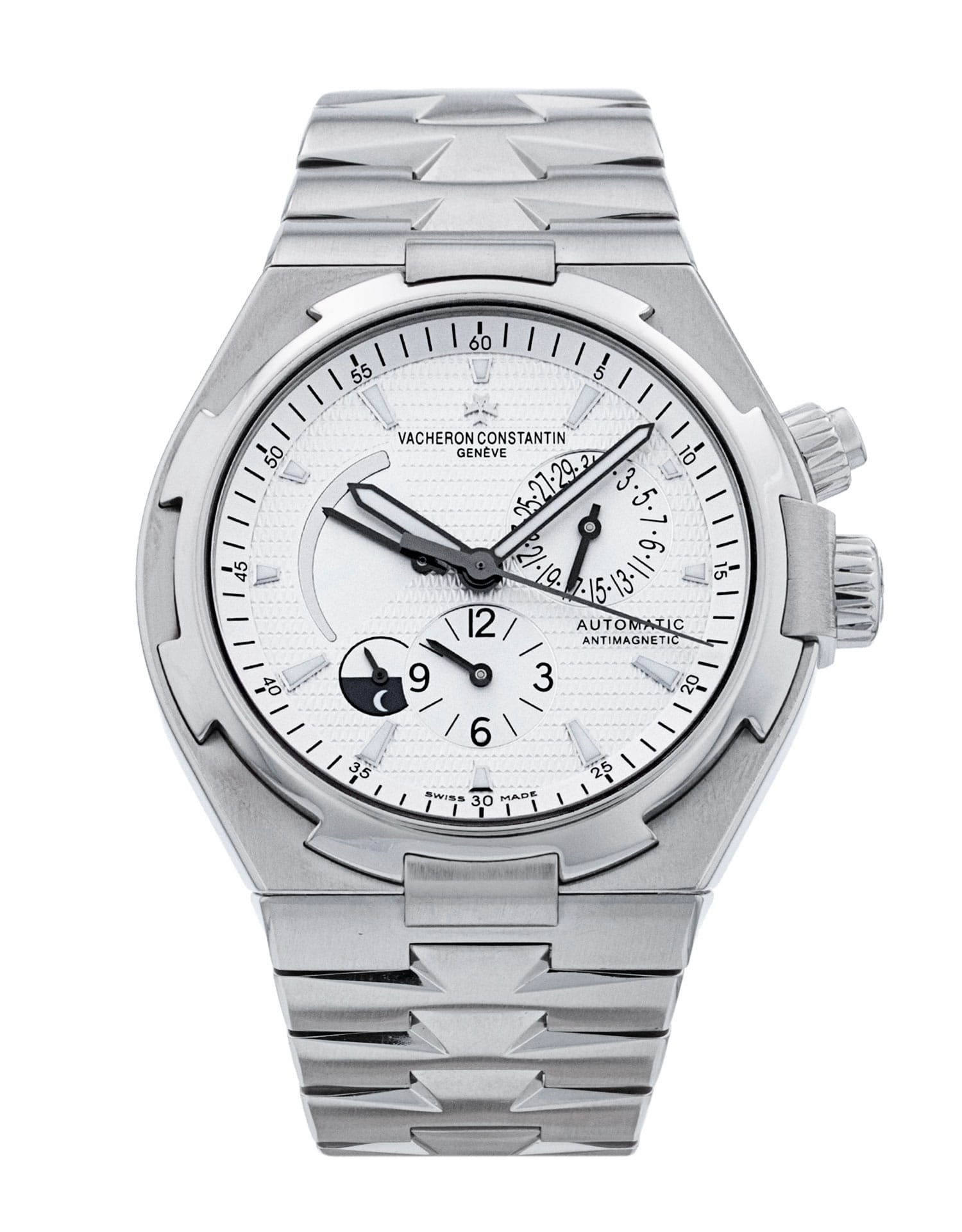 The Overseas collection, an iconic design from one of the world's greatest watchmakers, was first created in 1994 by visionaries Dino Modolo and Vincent Kaufmann. The design was strongly inspired by Vacheron Constantin's earliest sports watches from the 1970s, when the brand anticipated the popularity of casual steel watches with models such as the 222: tonneau case, round serrated bezel, sleek masculine appeal. Collectors especially appreciate the use of the Maltese cross pattern on the bezel, tying into the brand's extraordinary historical heritage. This spectacular model features several difficult complications, including a second timezone, day/night indicator and power reserve display.